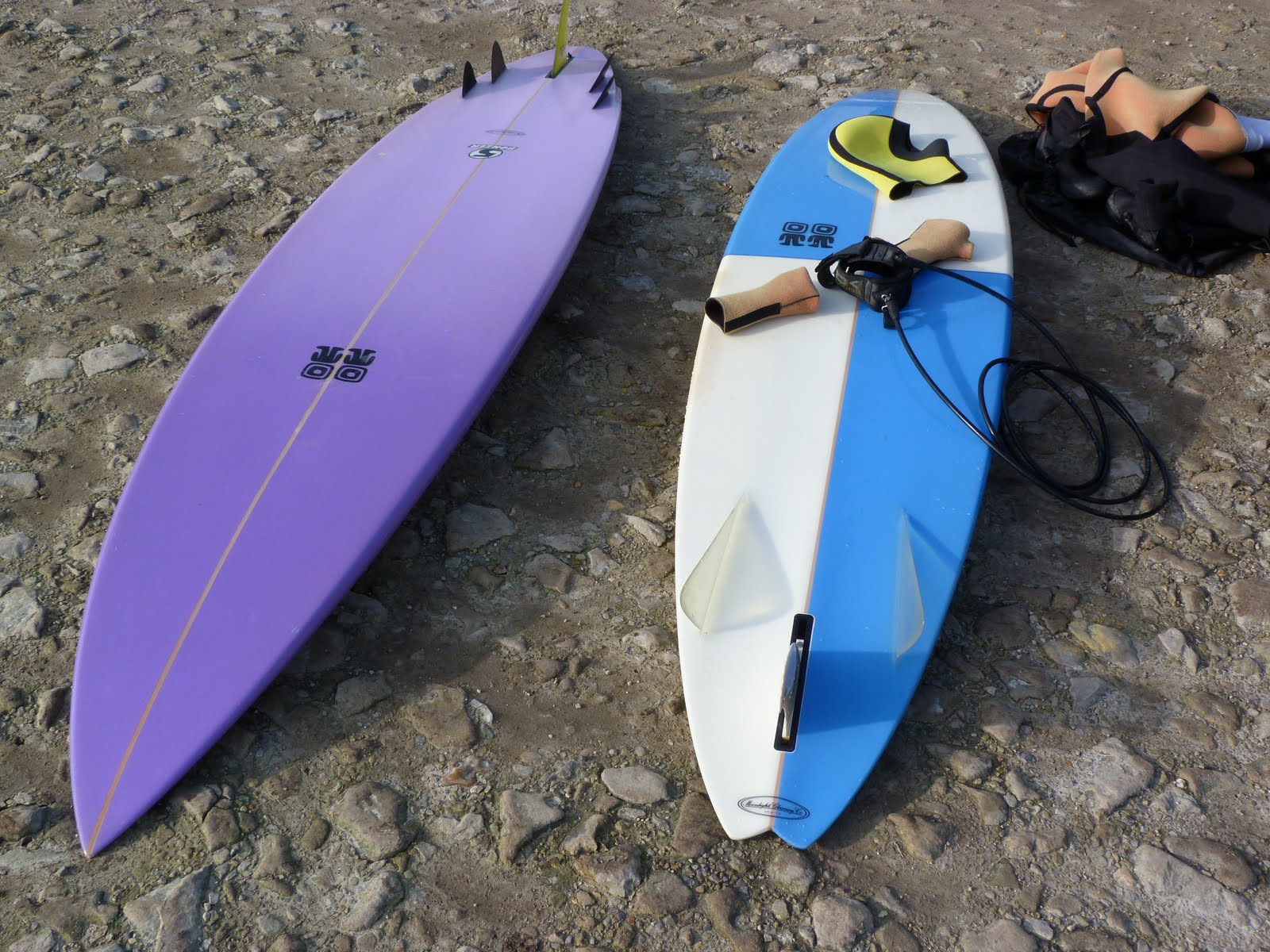 Boards of choice,the blue and white is 7' 6'' the purple one is 8'4'' to big you say? then you obviously havent paddled against the dropping tide rip out at the Bench, then tried to catch one of the THICK waves out there! + i'm 52 and it wears me out. Must say though that these boards rule out at the bench on such days.